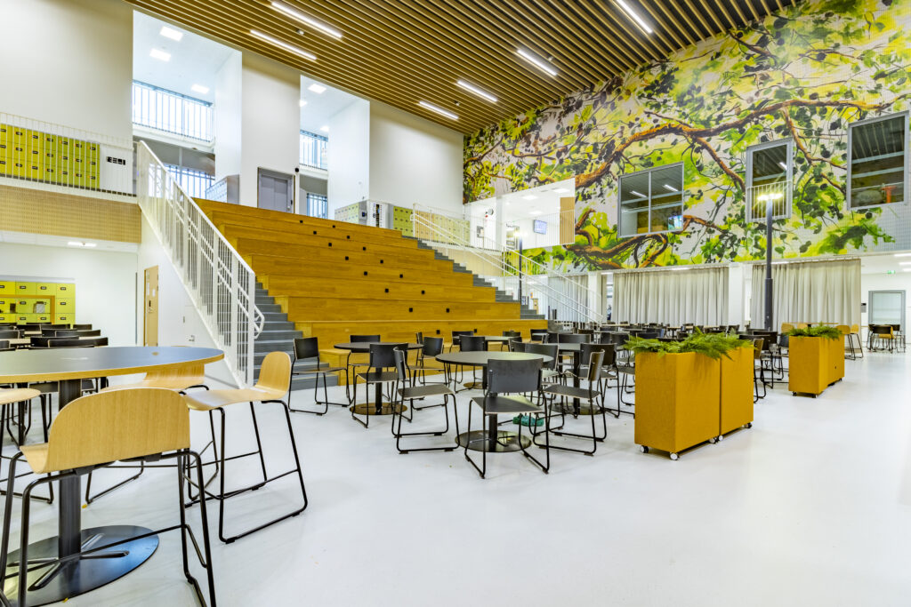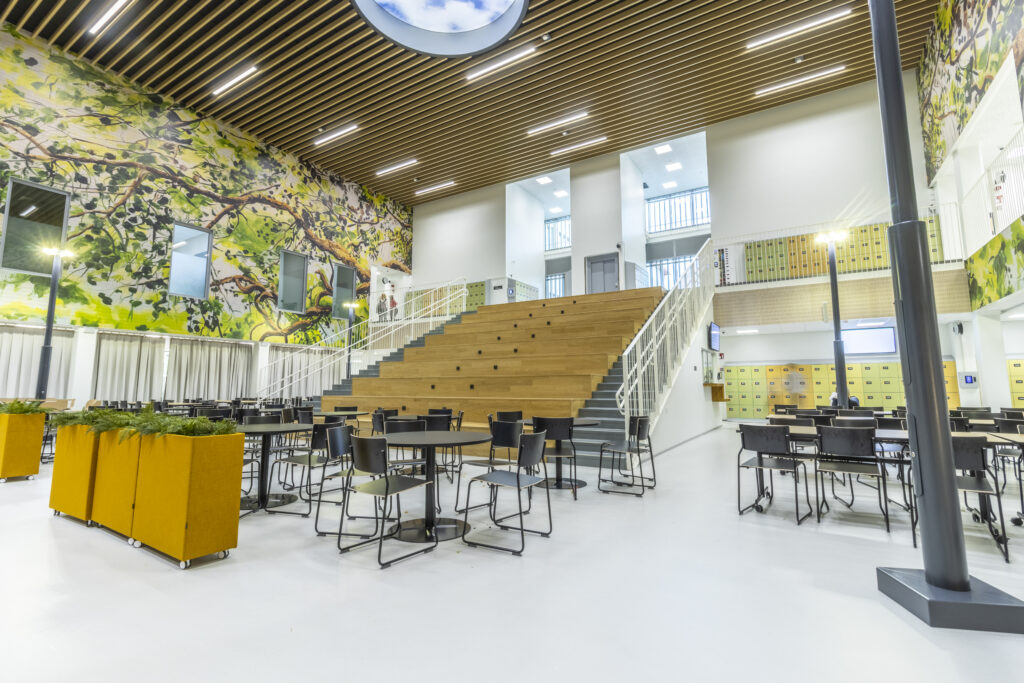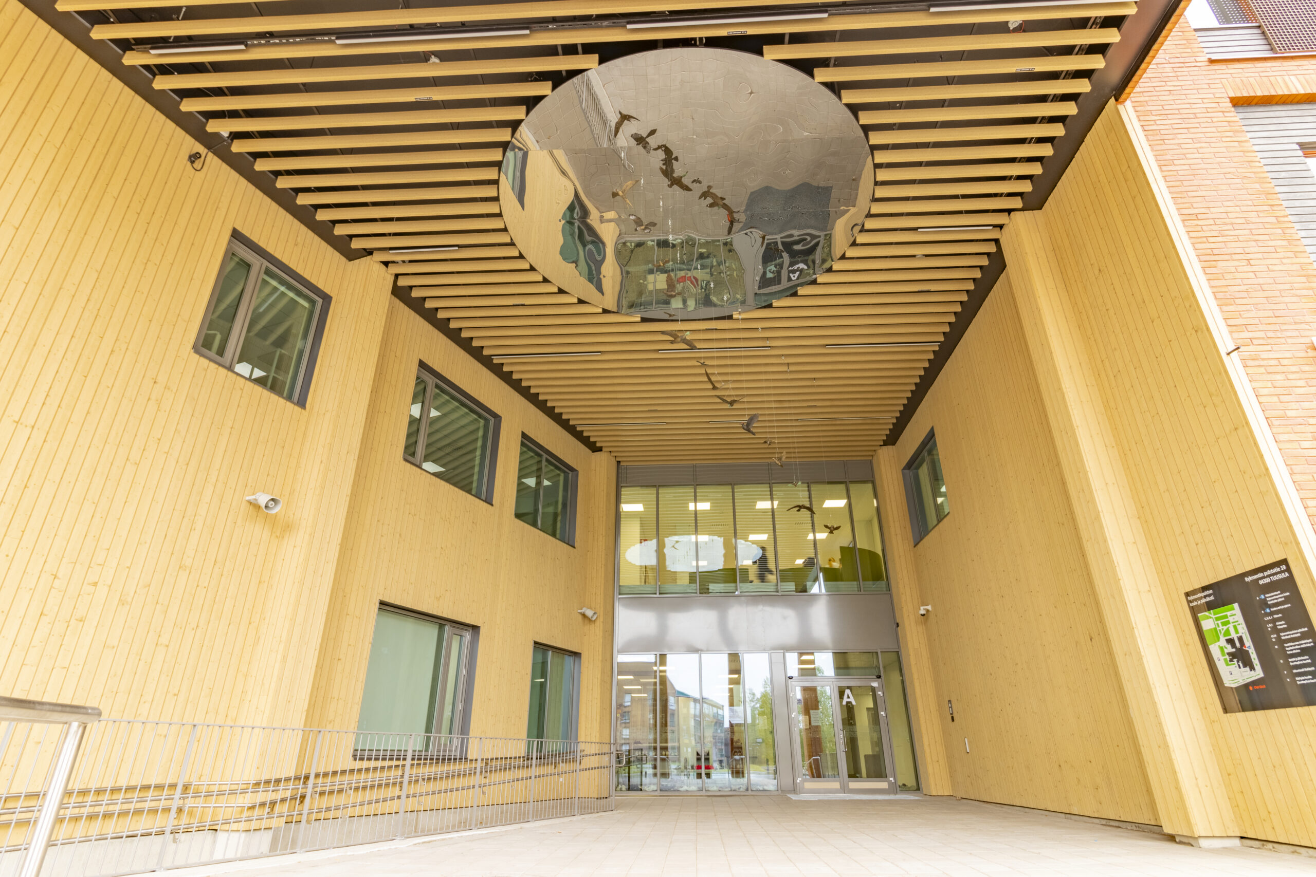 Vuonna 2025 valmistuneen Rykmentinpuiston koulun sisäkatoissa ja ulkolipassa on käytetty Lautexin tuotteita.
